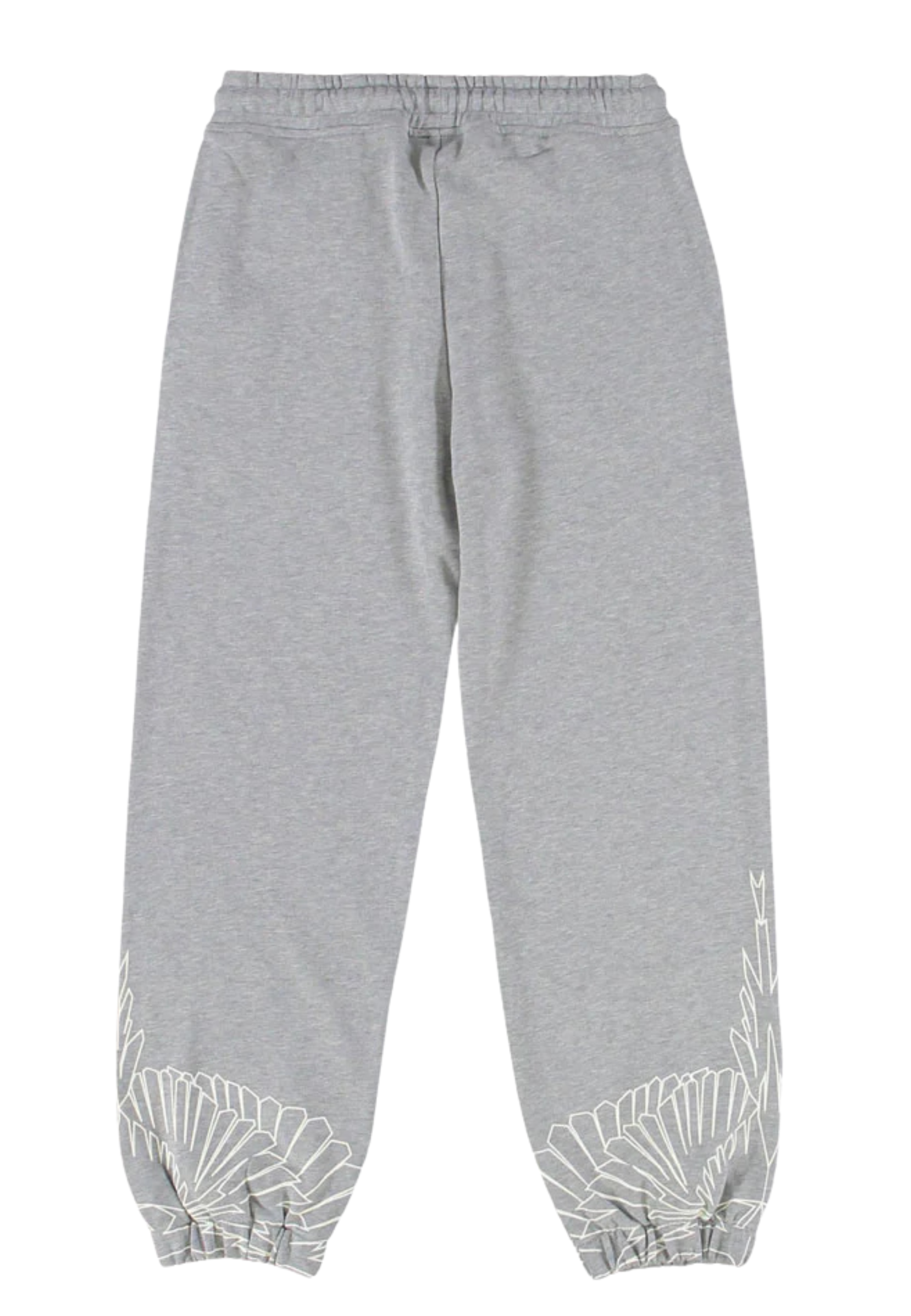Pantalone tuta bambino grigio in morbido cotone, comodo pratico, impreziosito da una fantasia sul finale delle gambe.