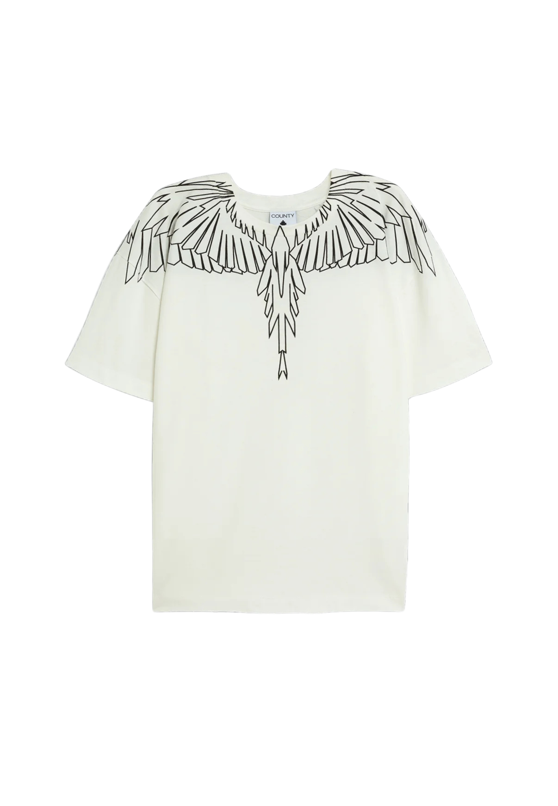 T-shirt in 100% cotone dal fit morbido. Stampa continua fronte e retro con motivo grafico iconico con ali stilizzate in contrasto bianco.