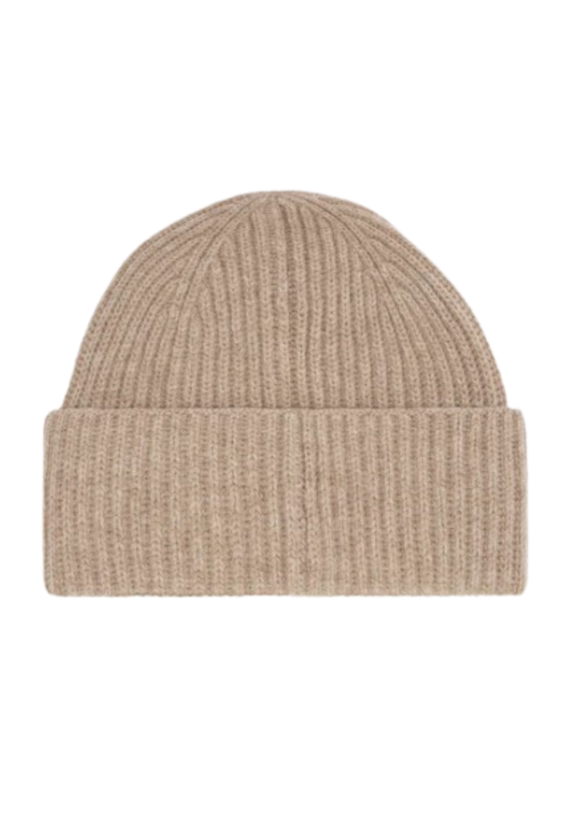 Essenziale e versatile: il berretto in maglia che completa ogni look casual. Berretto in maglia a coste inglesi Finezza 3,0gg Tinta unita beige Ricamo logo centrato davanti