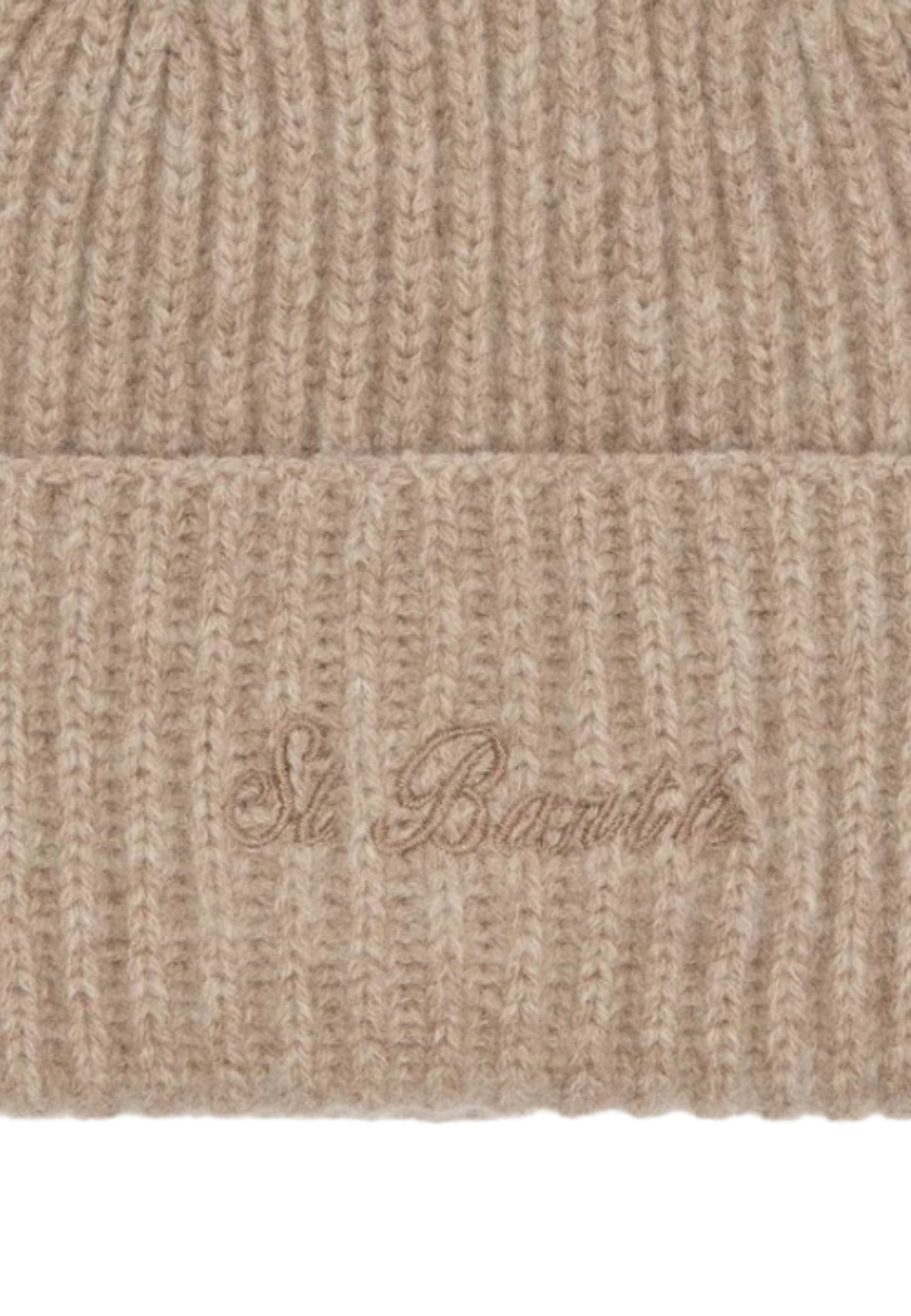 Berretto Moss in 100% LANA beige con ricamo St. Barth