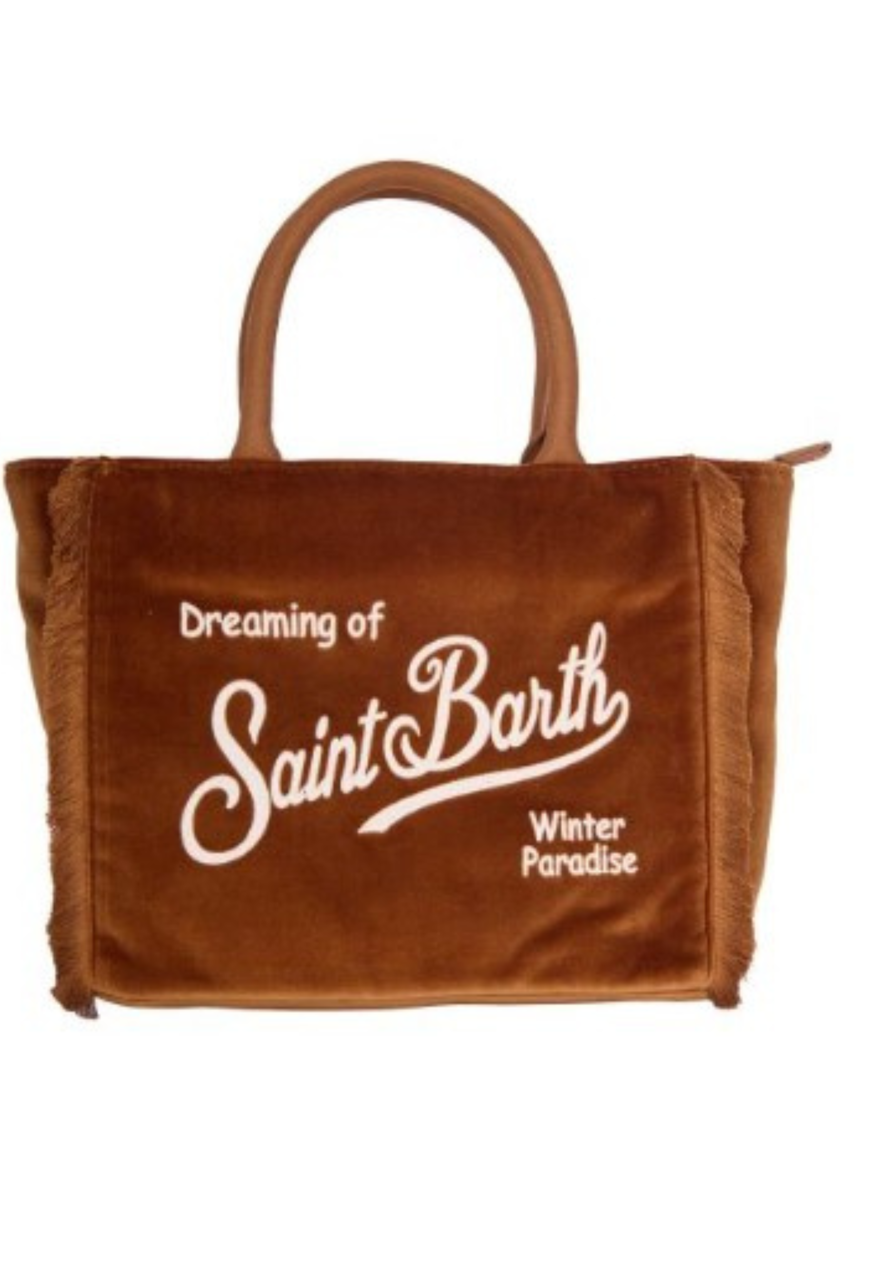 Realizzata in velluto liscio e luminoso, presenta il ricamo Dreaming of Saint Barth Winter Paradise sul davanti, un dettaglio distintivo che celebra leleganza rilassata del brand.