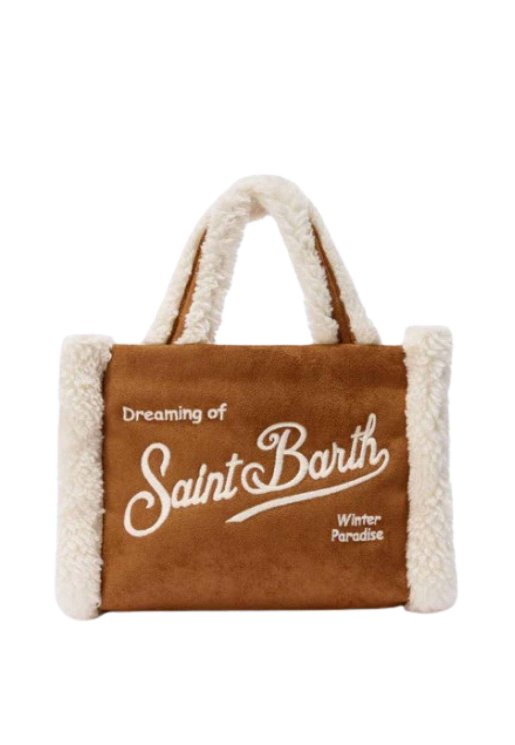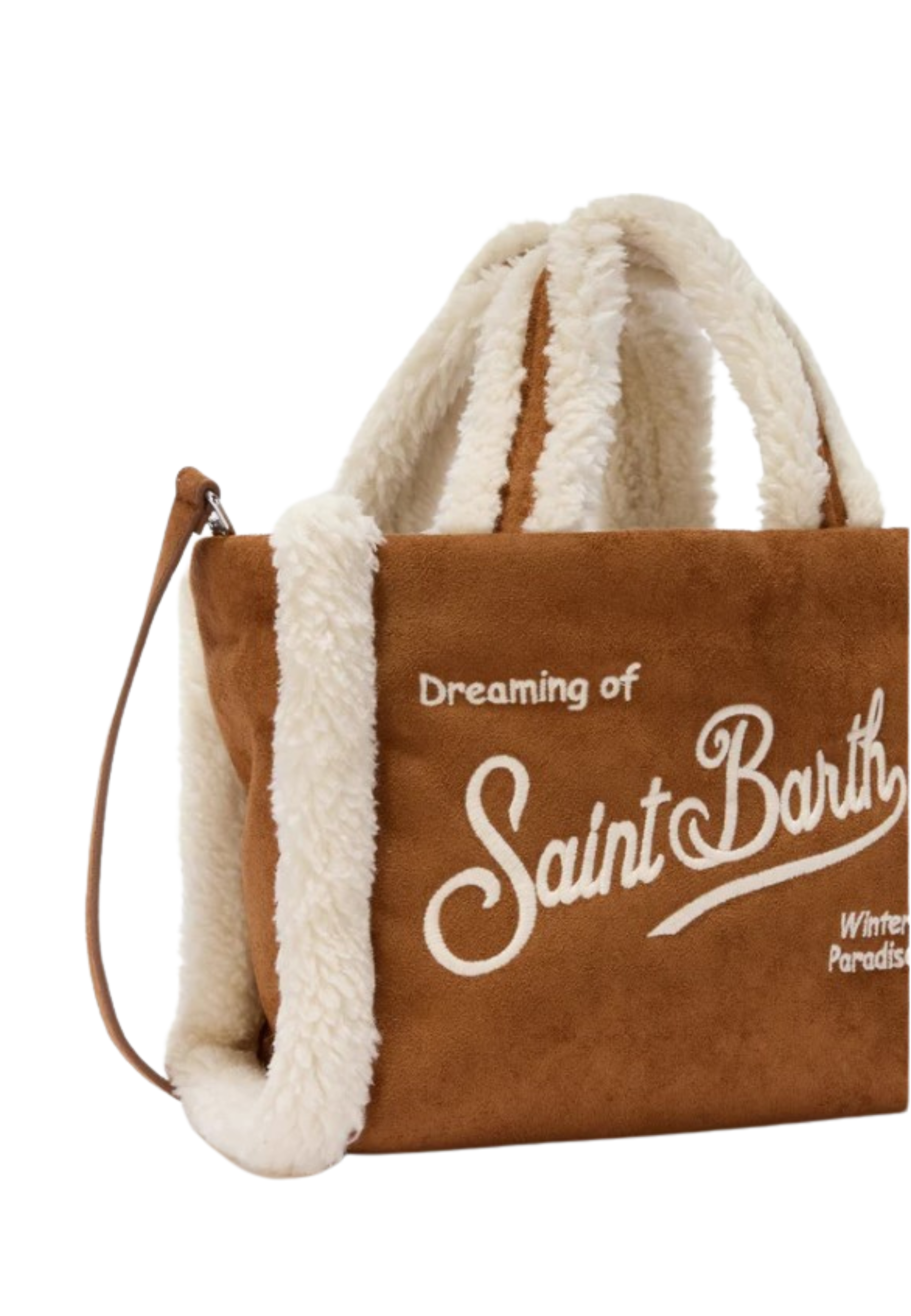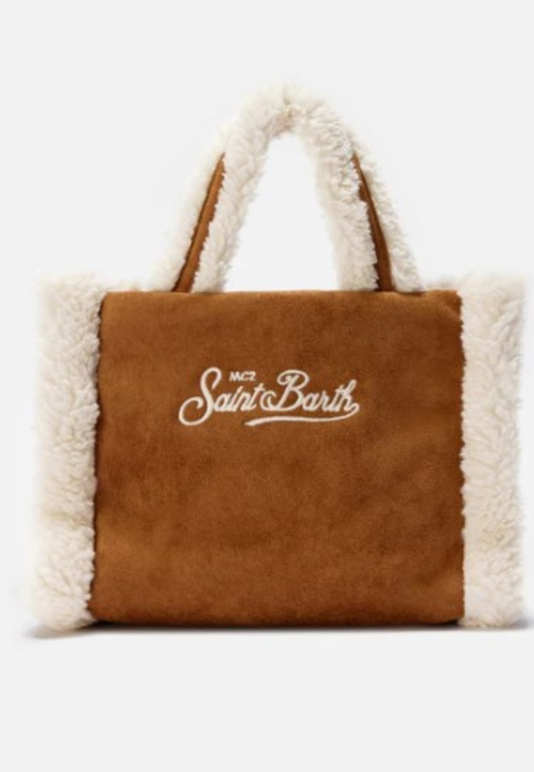 La Vanity Mini Shearling cammello unisce calore e stile per un look sofisticato e contemporaneo.Borsa morbida a manoShearling e faux suede cammello