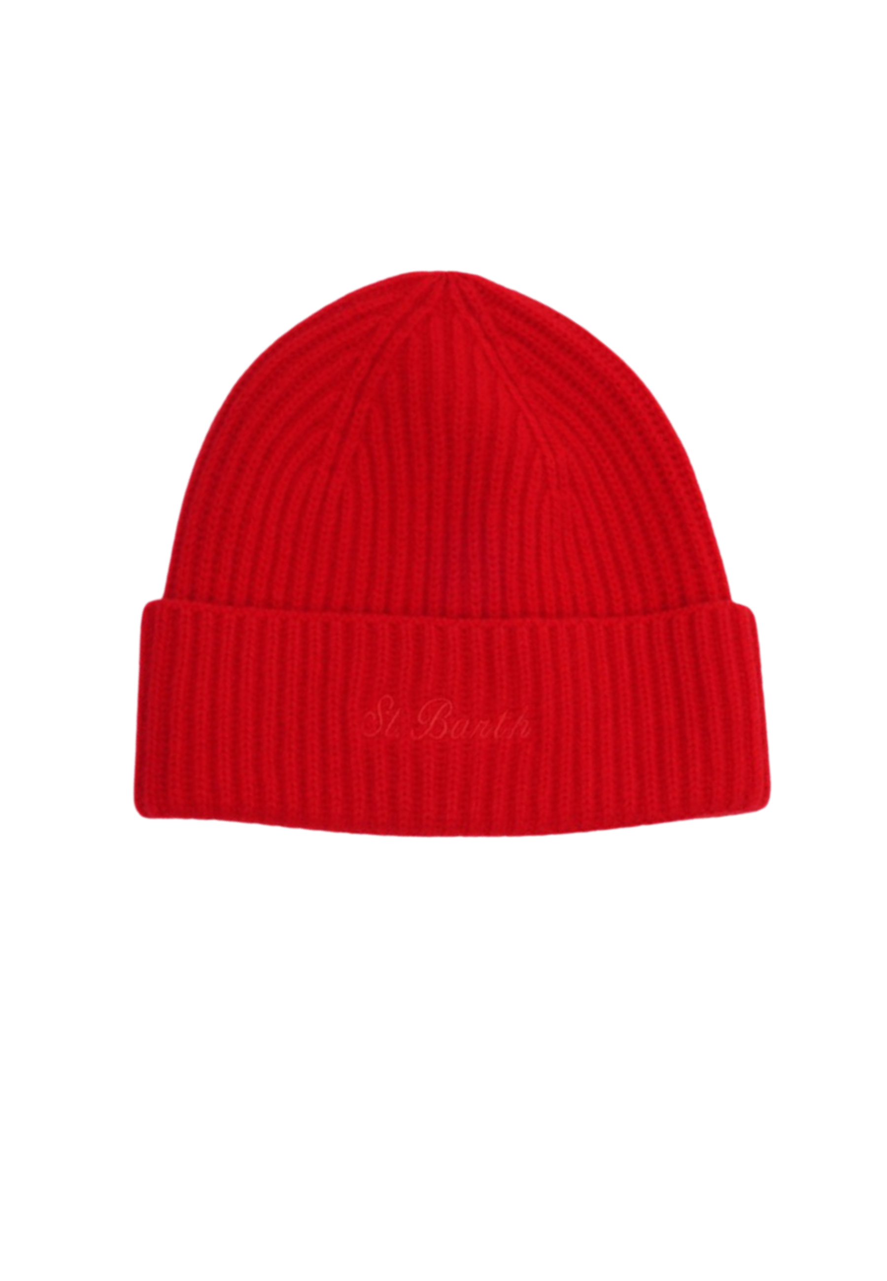 - Cappello in maglia a coste con risvolto, tinta unita rossa