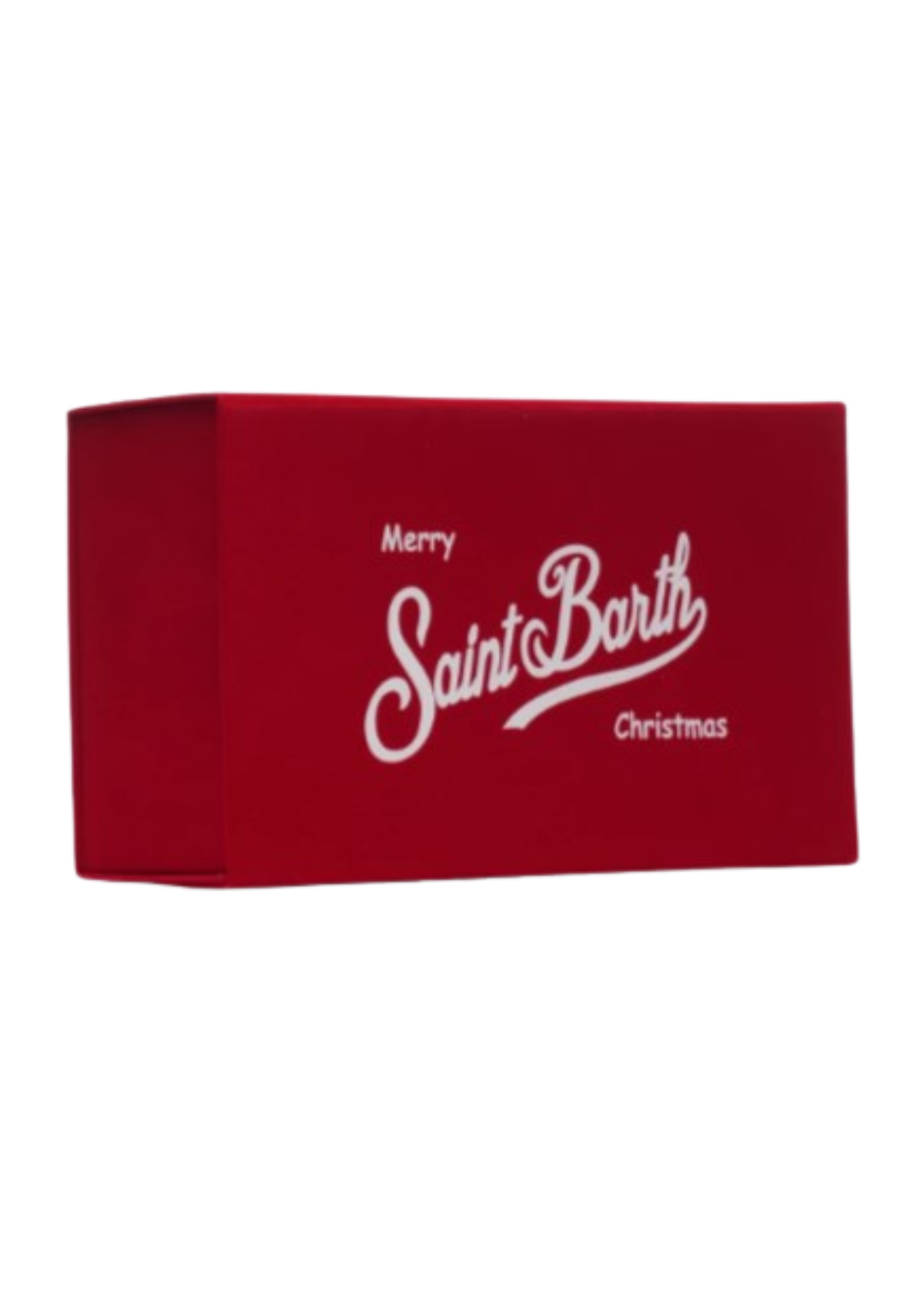 - Packaging natalizio rosso con logo ?Merry Saint Barth Christmas? stampato in bianco