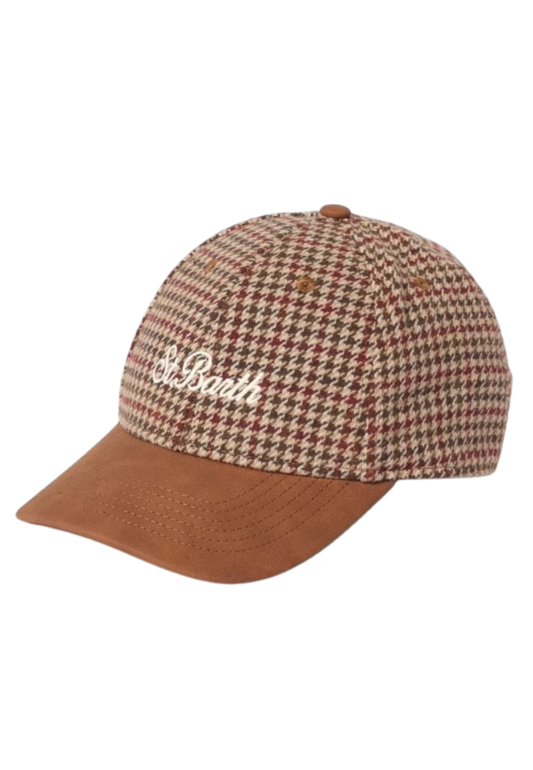 Cappello con visiera in misto lanaStampa pied de poulFodera internaLogo ricamatoDimensioni: Taglia unica regolabile