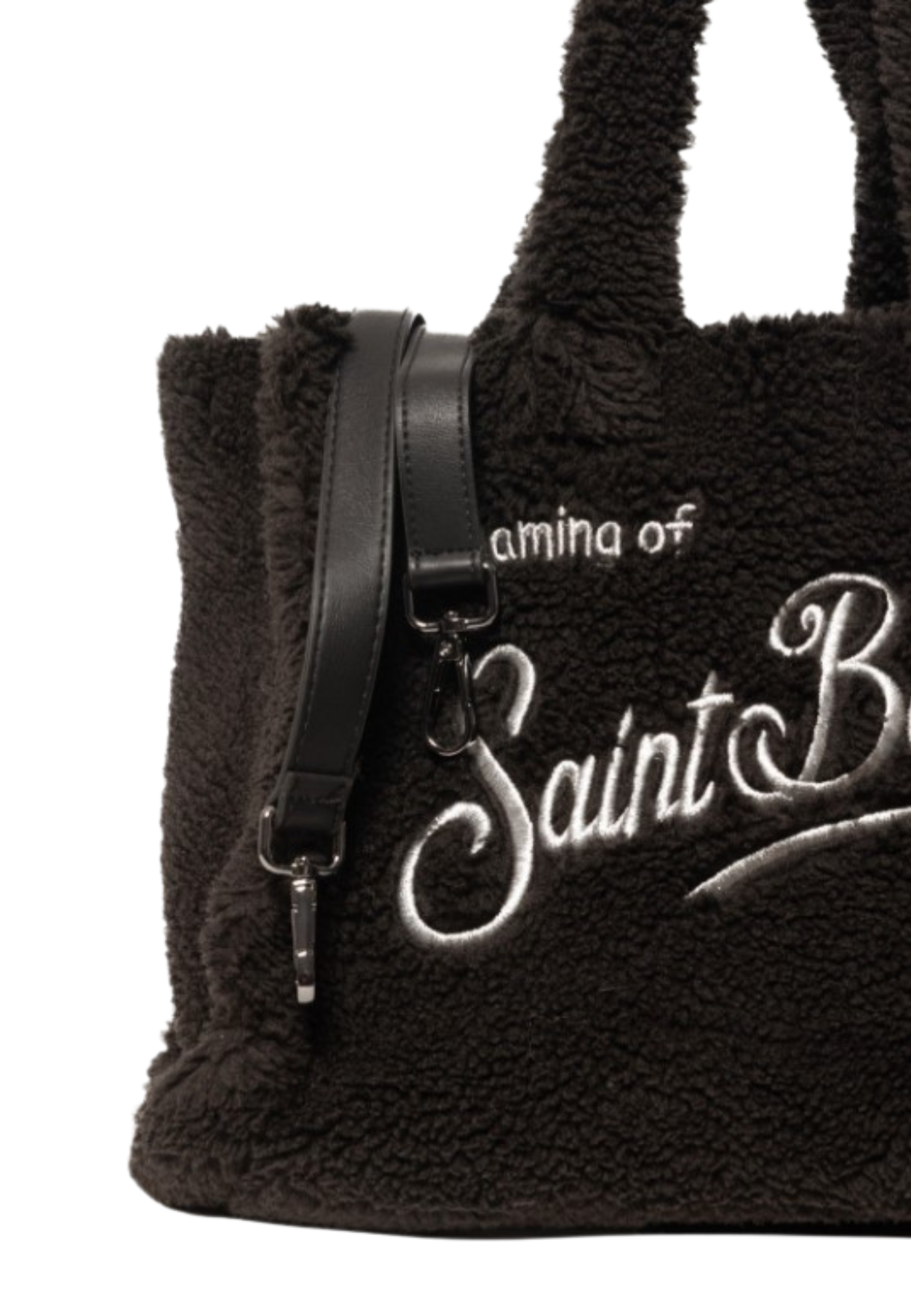 Borsa a mano modello Medium in tessuto effetto teddy, due manici fissi e tracolla regolabile in similpelle. Dimensioni 26x24x12 cm