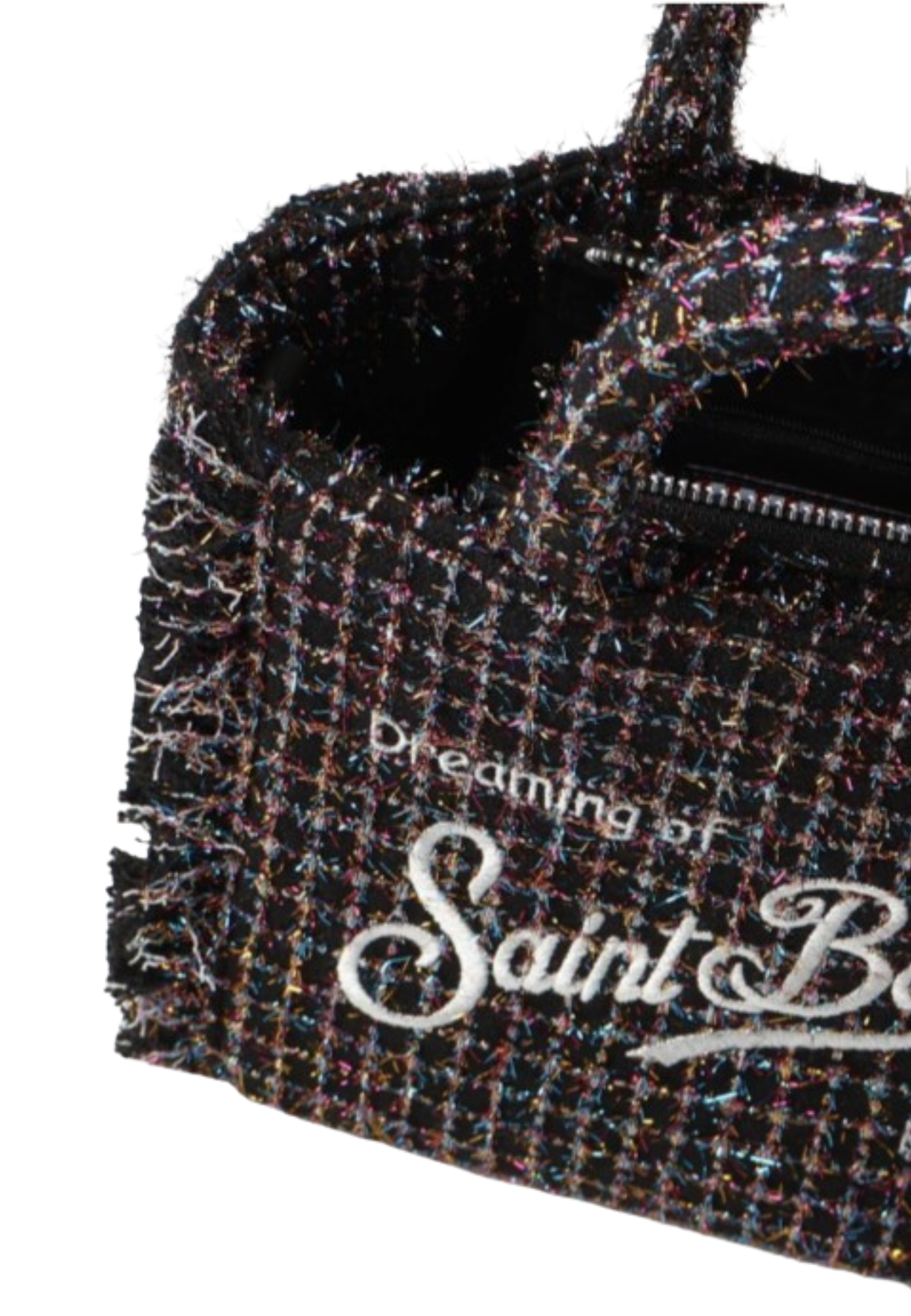 -Realizzata in tweed e faux suede-Tracolla removibile e regolabile-Ricamo logo-Tasca interna-Dimensioni: 20 x 19 x 10 cm