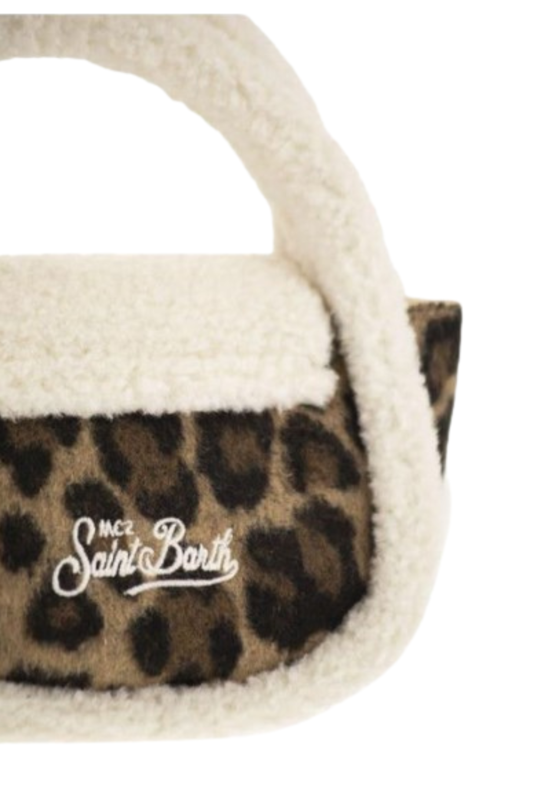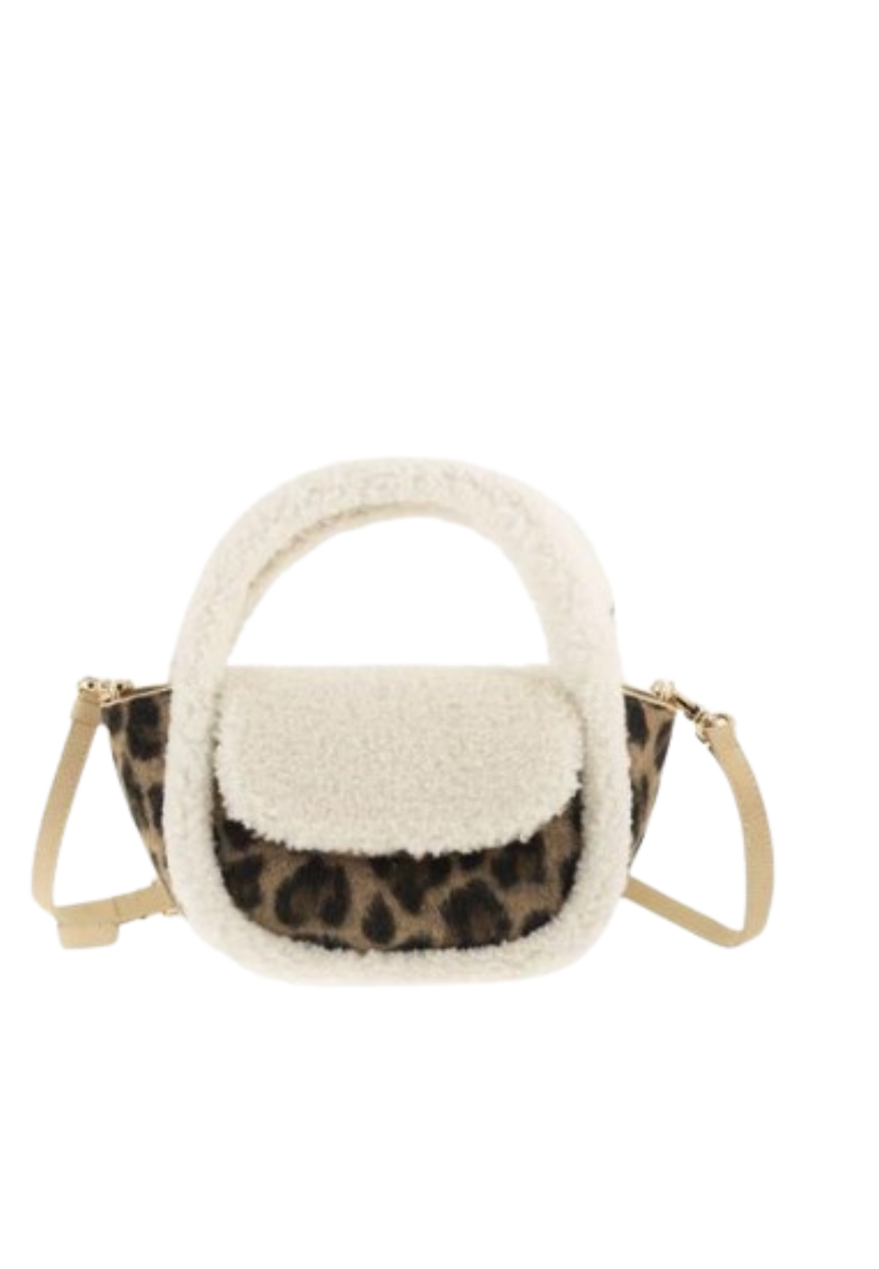 Borsa a mano in misto lana e shearling, stampa animalier - Tracolla removibile e regolabile - Tasca interna - Logo ricamato sul retro.
