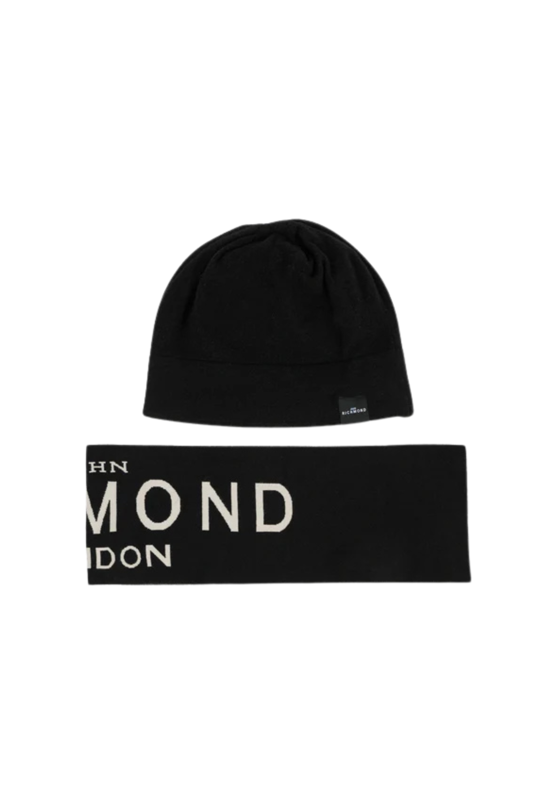 Set accessori nero composto da berretto e sciarpa; cappello con patch laterale logato e sciarpa con logo jacquard a contrasto. Dimensioni (L x A): 24,5cm x130cm